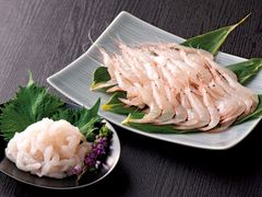 「富山湾の宝石」と称される白えびは、春のほたるいか、冬のブリと並んで、「富山県推奨とやまブランド」に認定されている海の幸。4月から11月までの期間、水深100~300mの水域に群生する白えびを、小型低曳網漁で漁獲する白えび漁は、世界で唯一富山県だけが行っています。漁獲後は瞬間凍結機で加工。「剥き身」は、1尾ずつ手剥きすることで、白えび本来の旨みと甘みをそのまま守っています。<食で旅する>
