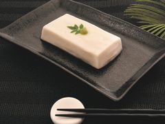 天然のゆずペーストを使用した爽やかなゆず風味のごま豆腐。極細引きをし、キメ細やかな舌触りに仕上げた黒ごま豆腐。