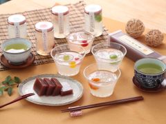 フルーツやフルーツボールゼリーを浮かべた葛きりと、なめらかで上品な甘さの水羊羹の詰合せ。涼やかな見ためとさっぱりとした味わいをお楽しみください。<食で旅する>※詳しくは「詳細を見る」または「もっと見る」をクリック