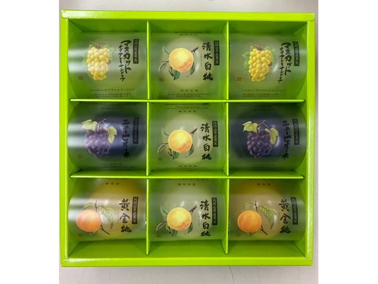 含まれるもの: 【セット内容(各90g)】清水白桃×3個、ピオーネ×2個、マスカット×2個、黄金桃×2個 / 送料(全国一律)