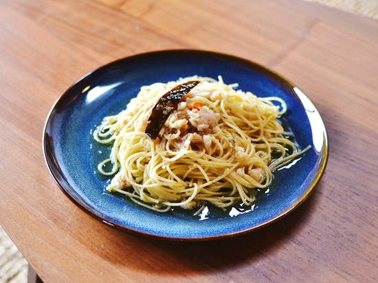 添加物なし!オリーブオイルやニンニク、鱧をたっぷりと使った絶品パスタソース
