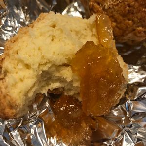 自宅で食べるのに注文しました。書いてある通りオーブントースターでスコーンを温めて頂きましたが、一口食べた瞬間ホロホロ~と今まで食べたスコーンの中で一番美味しかったです!他の方が仰っている通り個人的には紅茶はいらないので、スコーンをもう少し入れて頂いた方が良いなと思いました。マーマレードジャムもとても美味しかったです。