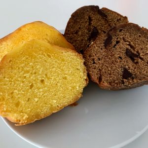 マドレーヌと聞くと貝殻の形を思い浮かべますが、こちらのものはマフィンのようなふっくらとした形。