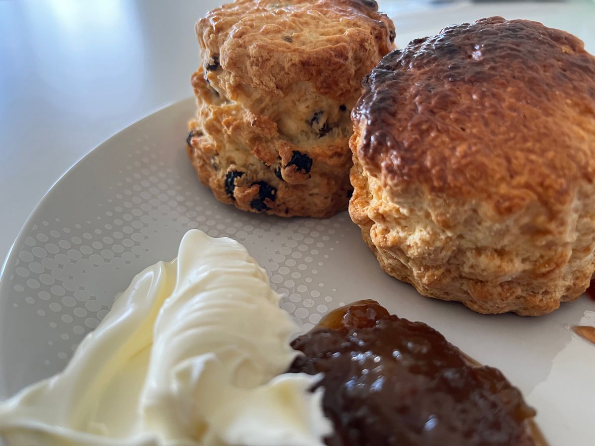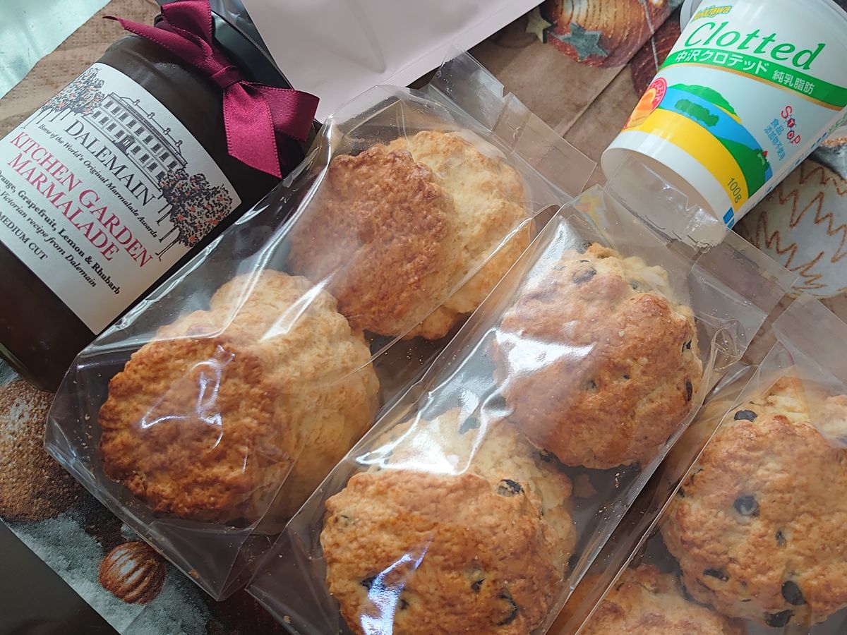 自宅で食べるのに注文しました。書いてある通りオーブントースターでスコーンを温めて頂きましたが、一口食べた瞬間ホロホロ~と今まで食べたスコーンの中で一番美味しかったです!他の方が仰っている通り個人的には紅茶はいらないので、スコーンをもう少し入れて頂いた方が良いなと思いました。マーマレードジャムもとても美味しかったです。