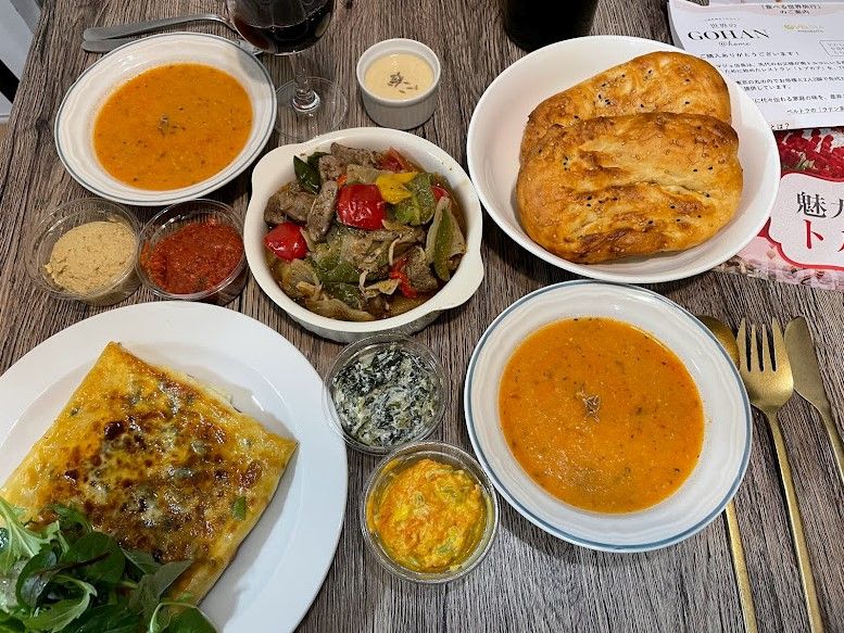 羊やスパイスなど異国の香りで美味しいです。野菜の使い方も日本と違って楽しい。野菜も多いのでお腹いっぱい食べても胃もたれせず、トルコ料理は美味しくて体にも優しいと思いました。