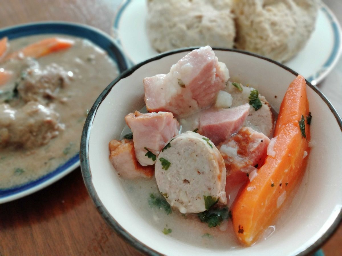 ダブリンコーデルは大きなハム、ソーセージ、野菜がたっぷりの具だくさんシチュー。クセがなく優しいお味で、小さなお子さんでも食べられると思います。