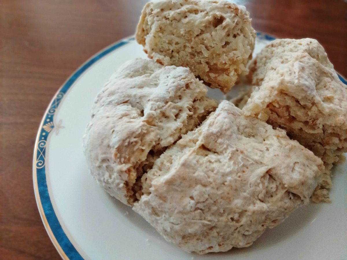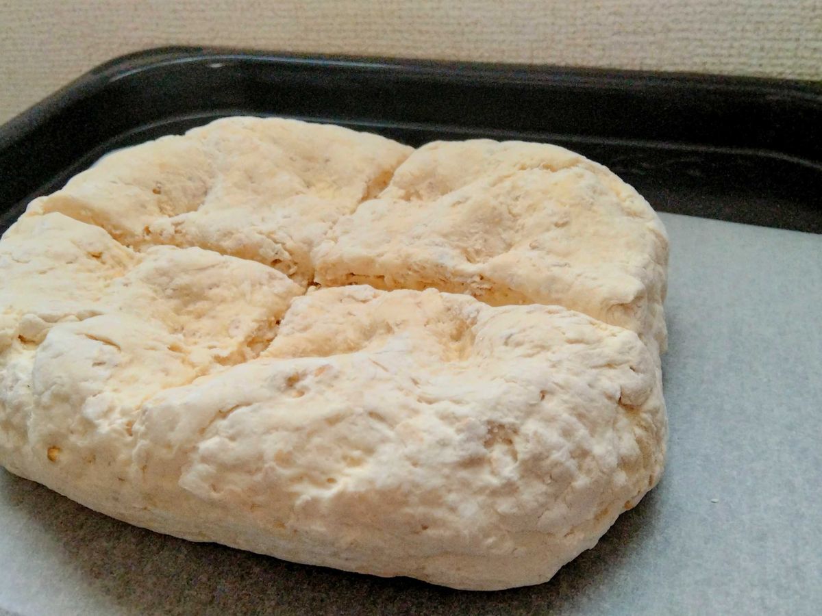 特典のアイリッシュオーツソーダパンの大きさにもびっくり!レンジのオーブン機能で50分ほど焼きました。焼き時間は長いですが、事前の解凍や再発酵が不要なのでとても簡単です。外側はカリッと、内側はしっとり感もあり、焼き立ては最高です!ずっしりと重いパンなので、女性なら6~8食分くらいになりそうです。