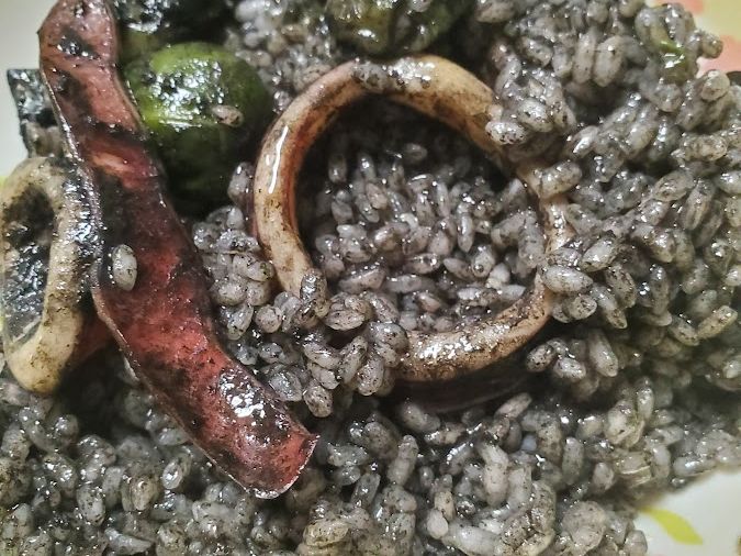 イカスミのアヒージョをパエリアに!!