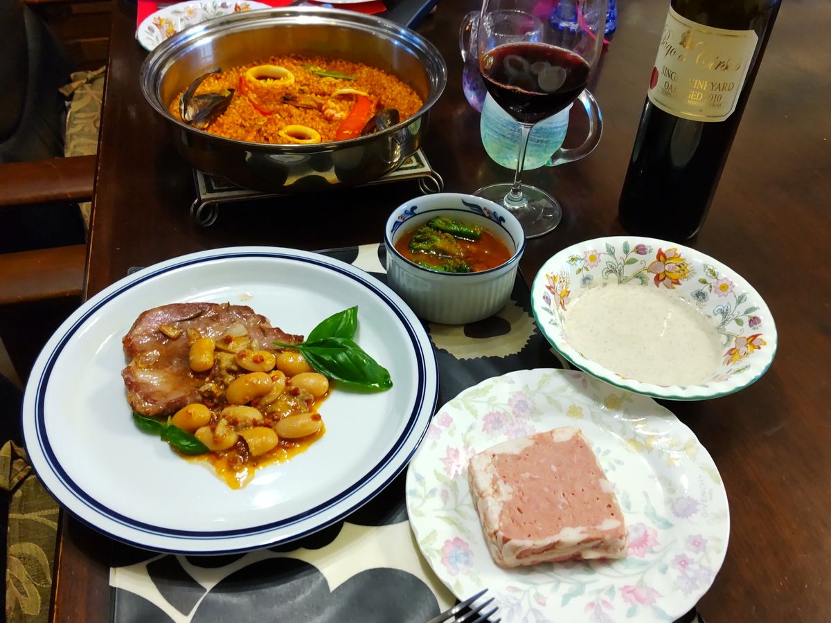 今年は外食を止めて、このコースを取り寄せて自宅で誕生日をお祝いしました。どれも美味しく楽しい誕生日会になりました。パテは大変美味しく赤ワインにぴったりでした。アヒージョはバケットとベストマッチでした。パエリアはフライパンで加熱するだけ、本格的にパエリアになりました。使用しているお米がスペイン産でやはり国産米と違い本格的な味でした。スペインで食べたパエリアを思い出しました。スープは自作しました。