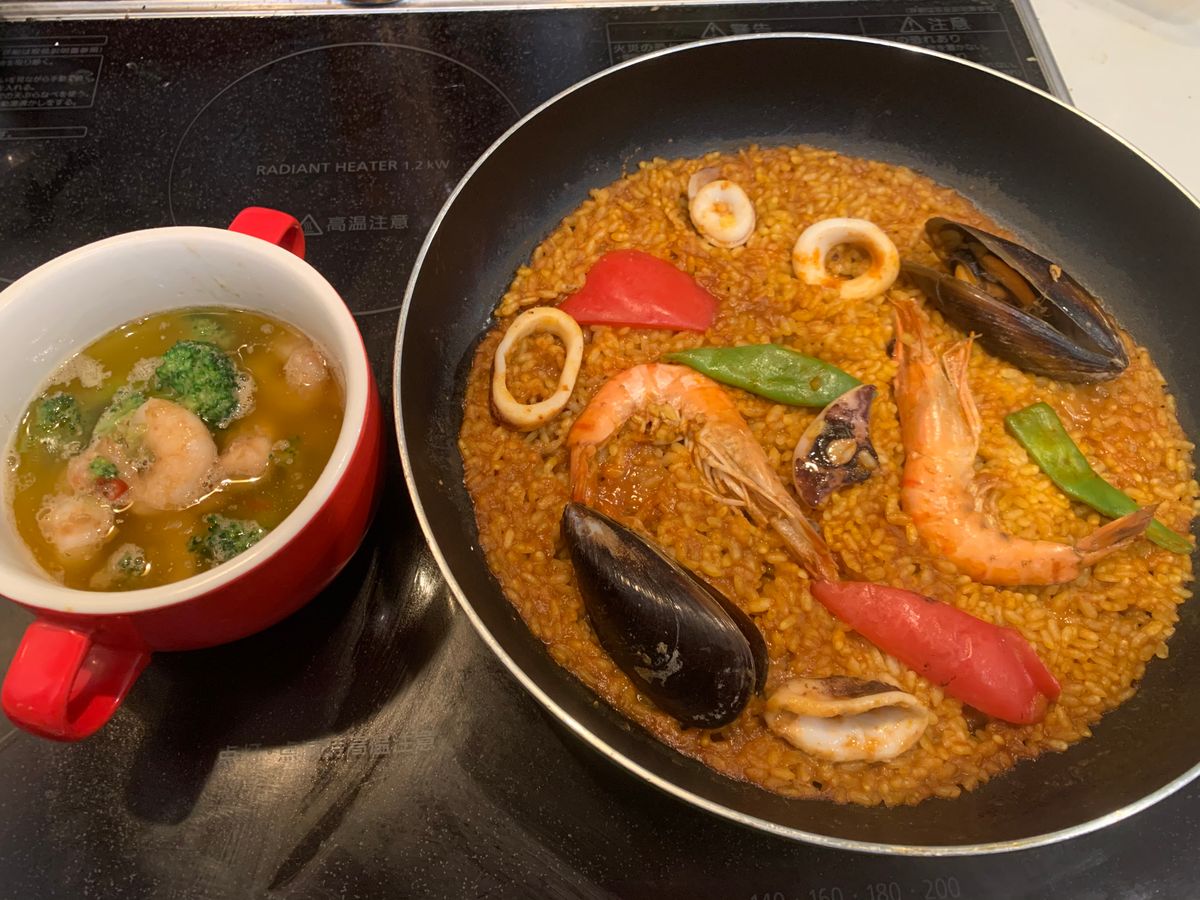 ここ最近、世界の料理の取り寄せにハマっていて、ベルトラから新しく販売されたスペイン料理のお店のパエリアとアヒージョのセットを早速注文しました。パエリアは上が米と具材の層、下がスープの層になっていて、冷凍状態のものをフライパンに乗せてちょちょっと調理するだけ。YouTubeで作り方を見ていたので、その通りにやったところ、おこげ付きの本格的なパエリアが完成しました!今回は魚介パエリアでしたが、魚介の味が米に染みていて、レストランで食べるレベルの味です。二人で食べて満足な量でした。また海老とブロッコリーのアヒージョは冷蔵庫で解凍して、チーズフォンデュ用の小さな陶器の鍋に入れて加熱し、沸騰したら出来上がりです。具材はもちろん美味しいのですが、エビのエキス(?)が入ったオイルがとにかく美味しく、パンに付けて食べました。ワインによく合う味です。まだまだ外にご飯を食べに行く機会が少ないので、こちらのお取り寄せのスペイン料理はお勧めです!!