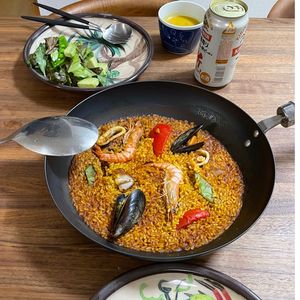 冷凍で届いたパエリアは容器からするっと取り出せフライパンに移すことができました。火をつけてから15分程で完成!バレンシア風は少しクセがありむしたが、ノーマルとイカスミはとっても美味しかったです!