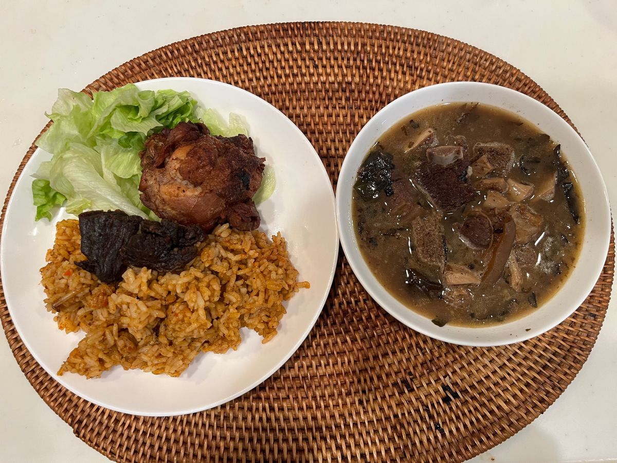 今日食べたのは、ぺぺスープとジョロフライス。ぺぺスープは山羊肉の匂いが独特なので好き辛いが分かれそうですが、僕は意外と好き。今までに味わったことがない辛さで、一口飲むと汗が出てきます。ジョロフライスは少し辛めですが、優しい味で皆んな好きな味だと思います。肉の量もたっぷりで、結構お腹いっぱいになりました。