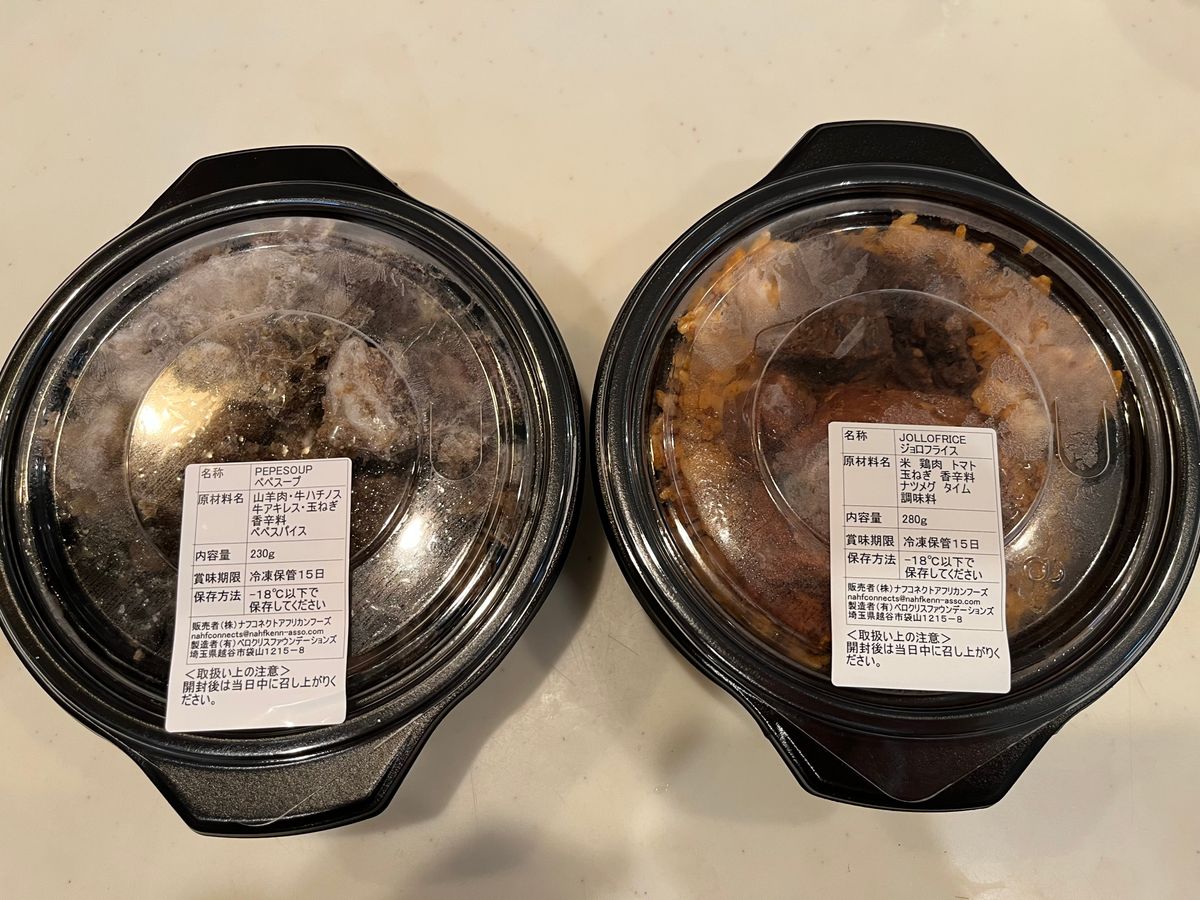 届いて段ボールを開けた瞬間、あまりにパッケージが綺麗で逆にビックリ。可愛らしい感じです。冷凍の状態でレンジで温めるだけなので、かなり簡単に西アフリカ料理が食べられます!