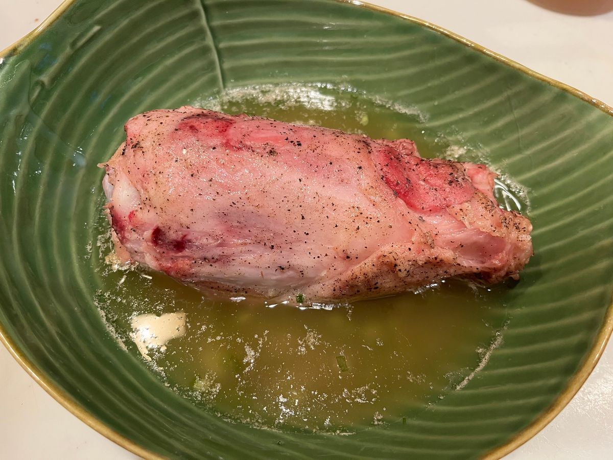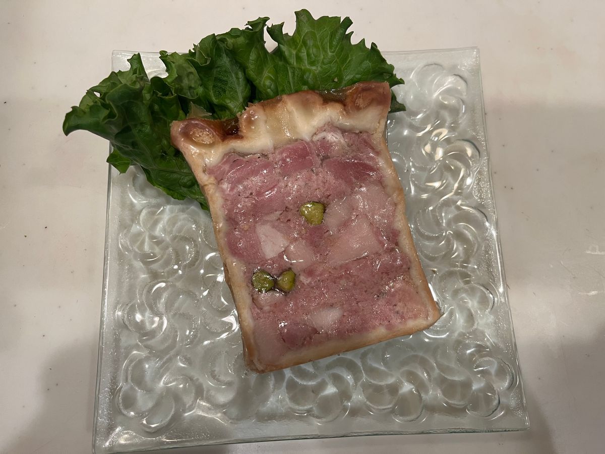 以前にびっくりするほど美味しかった豚肉のステーキ肉の食べ比べセットを購入した久慈ファームさんの商品なので、迷わず購入しました!1品あると食卓が急にお洒落になる料理が6品入っています。幾つかはクリスマスのディナー用に取っておくとして、「佐助豚と二戸地鶏のパテ・オン・クルット」と「佐助豚のスネ骨付きのコンフィ」を食べました。パテ・オン・クルットは良く冷えたスパークリングワインと一緒に食べましたが、程良い肉の食べ応えとピスタチオの風味でワインがいくらでも進みます。またコンフィはどーんと1キロもありますので、ボリュームが半端ないです。肉の塊のままかぶりついてワインを流し込んだり、ほぐして白ごはんに乗せて醤油をちょっとかけて食べたり、軽く焼いたバゲットと一緒に食べたり、何とでも相性がバッチリ!1キロのお肉が以外とペロリと無くなりました。クリスマスに他の料理を食べるのを楽しみにしていますが、クリスマスまで待てないので、もう1セット買おうと思います!(笑)