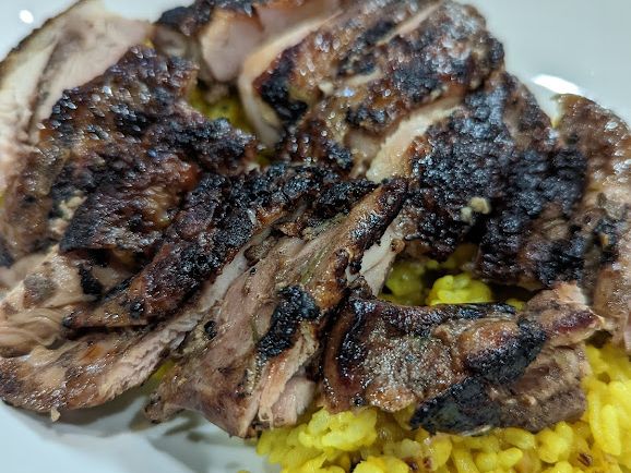 スパイスやハーブ、炭火の香りが感じられるジャークチキンは本当に絶品でした。ライスと食べるとまた新しい美味しさで1食で2つの美味しさを味わえるような料理でした。