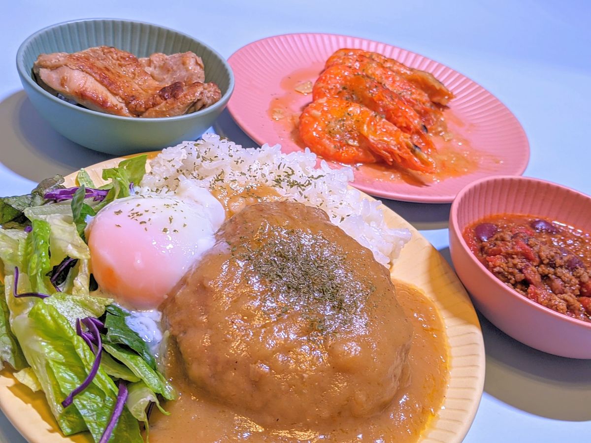 セットとは別にごはん、卵、サラダ、そしておしゃれなプレートがあると盛り付けも楽しめます〜!