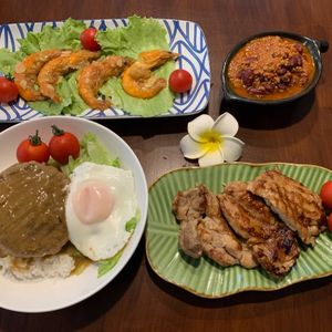 中々久しぶりのメニューだと、喜んで注文。お肉もしっかり、それにガーリックシュリンプ、美味しいです!目玉焼きを作り、とても美味しく出来ました!また頼みたい。
