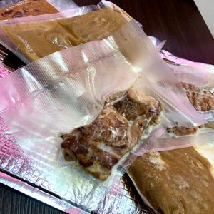 これまではレンジでチンしたり、フランパンで熱したりと、調理方法も色々でしたが(簡単ですけど)、このハワイ料理は湯煎だけ。大鍋に全ての真空パックのパッケージを入れて、一度に湯煎して出来上がります。今までで一番簡単でした。