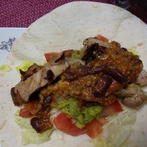 翌日はトルティーヤとワカモレを用意して、チリビーンズとチキンを温めてタコスにしました。
