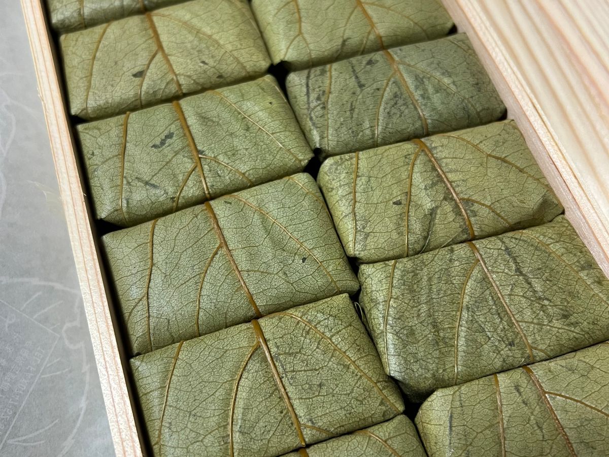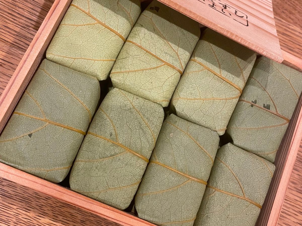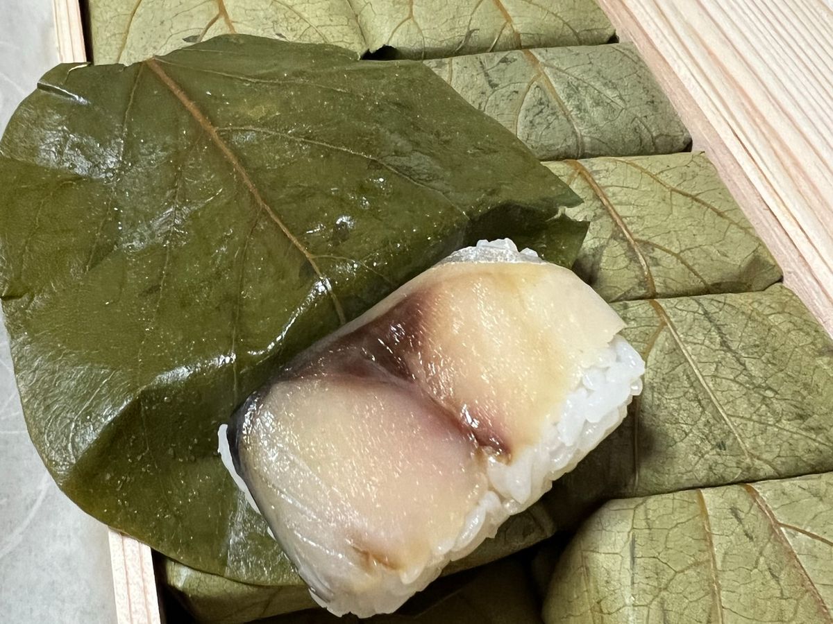 とても丁寧に作られた伝統の、知る人ぞ知る柿の葉寿司を食べることが叶いました。立派な柿の葉にひとつひとつ包まれた押し寿司は、”今日はちょっと高級な寿司にしようか”にぴったりでした(笑