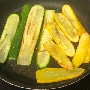 ズッキーニは簡単にオリーブオイルでソテーしてホクホクをいただきました。
