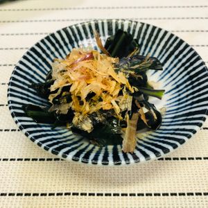 金時草は、我が家で栽培しているハンダマよりも大きくインパクトあり!こちらはさっと茹でておひたしに。