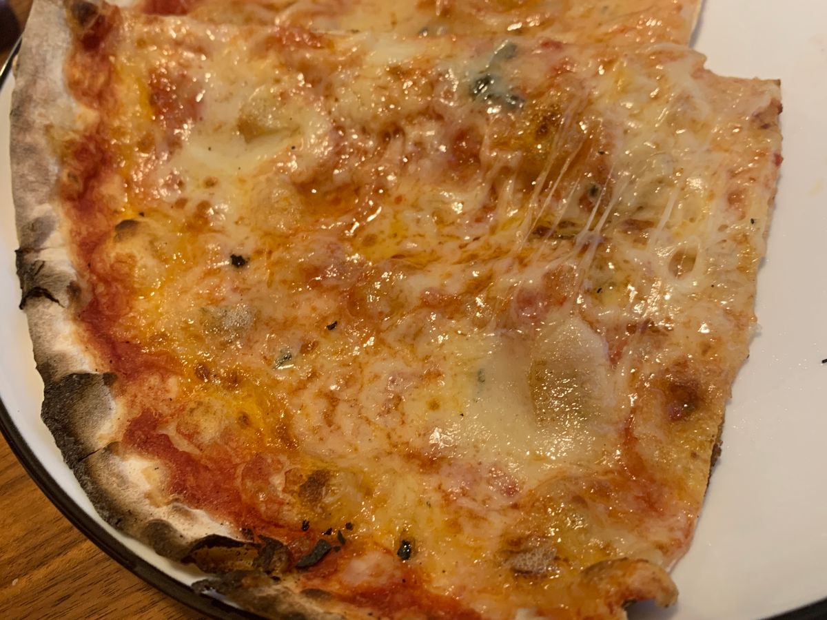 マルゲリータというと定番のイメージがありますが、こちらのピザはゴルゴンゾーラが結構効いていて大人向けのお味だと感じました。