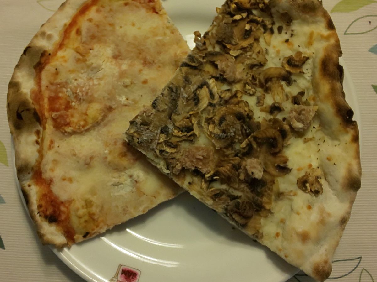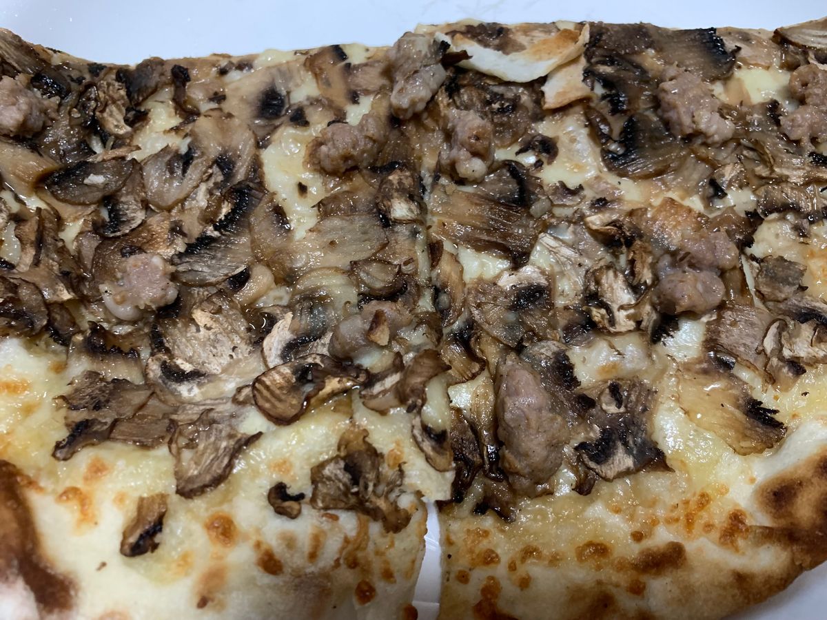 フンギサルシッチャは風味たっぷりのトッピングで、こってり感はなく、マルゲリータと同様パリパリのクリスピー生地とマッチしています。息子はこちらの方が好きな味で美味しいとの評価でした。私はマルゲリータが好きです。2種のセットで頂けたのも良かったと思います。