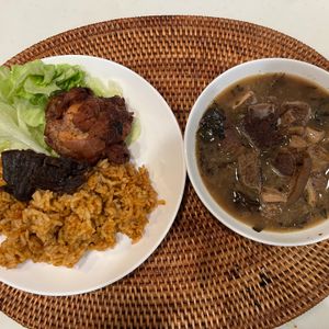 今日食べたのは、ぺぺスープとジョロフライス。ぺぺスープは山羊肉の匂いが独特なので好き辛いが分かれそうですが、僕は意外と好き。今までに味わったことがない辛さで、一口飲むと汗が出てきます。ジョロフライスは少し辛めですが、優しい味で皆んな好きな味だと思います。肉の量もたっぷりで、結構お腹いっぱいになりました。