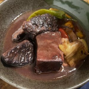 口の中に広がるソースのまろやかな味わいと、とろけるお肉のハーモニーが最高でした。付け合わせの野菜も数種類あって満足でした。