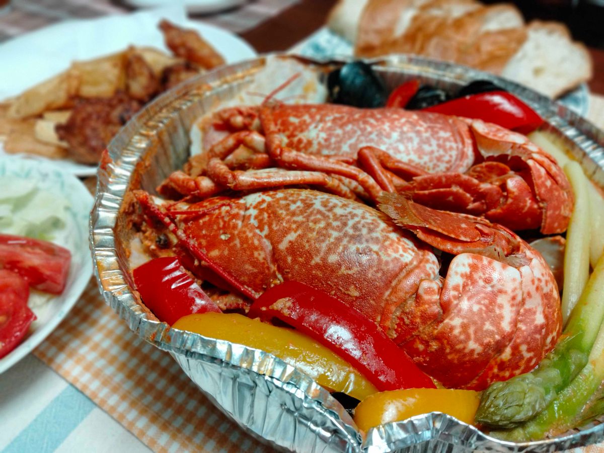 「オマールブルー」の名前のとおり、冷凍で届いたときには青い色をしていますが、20~30分ほど煮込むと綺麗に赤く色付きます。殻の部分が大きいですが、中にはしっかりと引き締まった身と味噌が詰まっていて食べごたえがありました。大きな海老に隠れて見えない部分にもアルゼンチン赤海老やムール貝、ホタテなどの魚介類がたっぷり。旨味が染み出たトマトスープも絶品でした!おすすめのとおりシメはチーズリゾットにしましたがこちらもとてもおいしくいただきました。