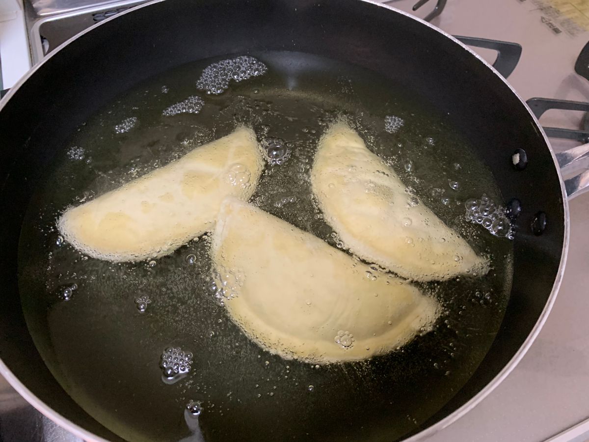 揚げ焼きが少々手間だったので、別日には凍ったままの表面に油を塗ってオーブンで焼いてみましたが、これでも美味しく食べられました。ラム肉の具でしたが、これも美味しかった!