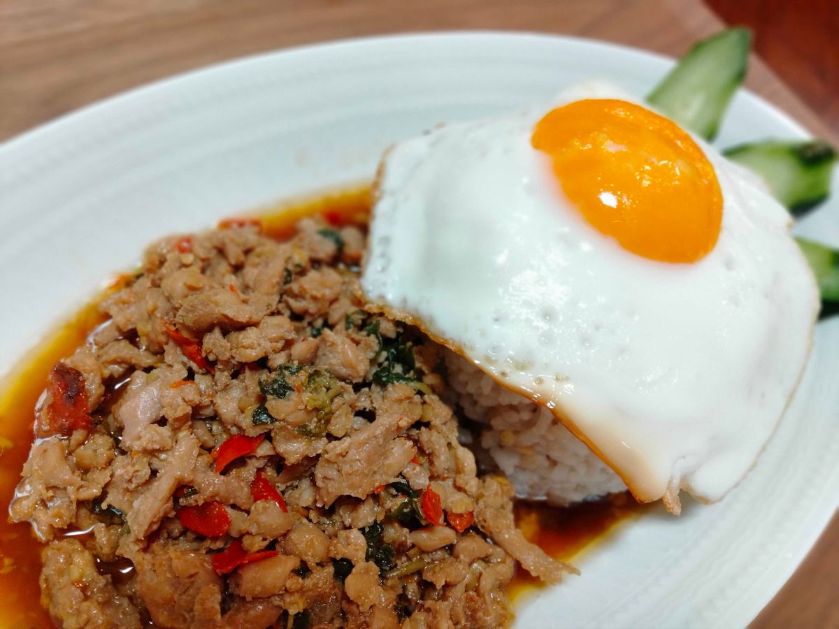 早速ガパオガイをいただきましたが、本当に本格的な味でおいしかったです!ガパオは大好きなので自炊したり市販のキットで作ってみたりしたこともありますが、一線を画すお店の味でした。本格的な分、辛味もしっかりあるので、辛いのが苦手な方は、おすすめの調理法にあるように玉ねぎやパプリカを追加すると良さそうです。
