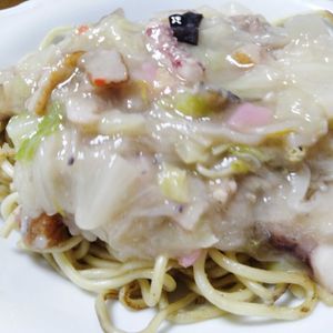肝心の味は、魚介の旨みが餡に凝縮されていて、ただただ美味いの一言。少し焦げ目をつけてある軟麺が香ばしく、餡との相性が最高です。お腹は膨れてきますが、箸が止まらず、一気に完食!味も量も満足です。