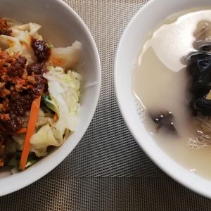 3つの味のスープはどれも美味しかったです。が、肝心のビャンビャン麺が、うどん粉を丸めて伸ばした感じで、こんなものなのかと思いながらいただきました。