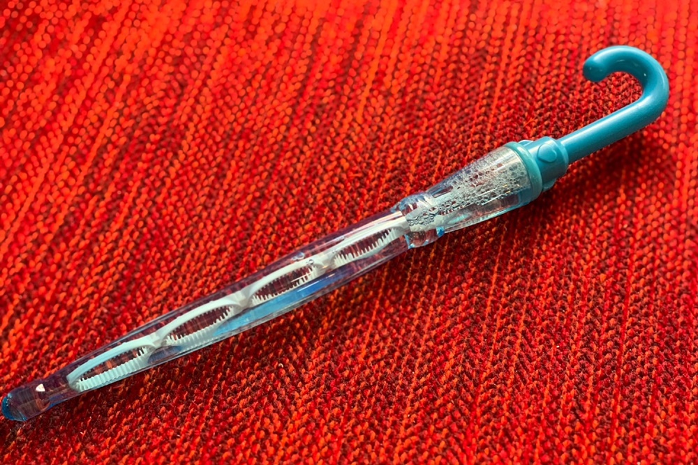こちらは全長38センチの傘をモチーフにした見た目もかわいいスティックタイプのシャボン玉です。
