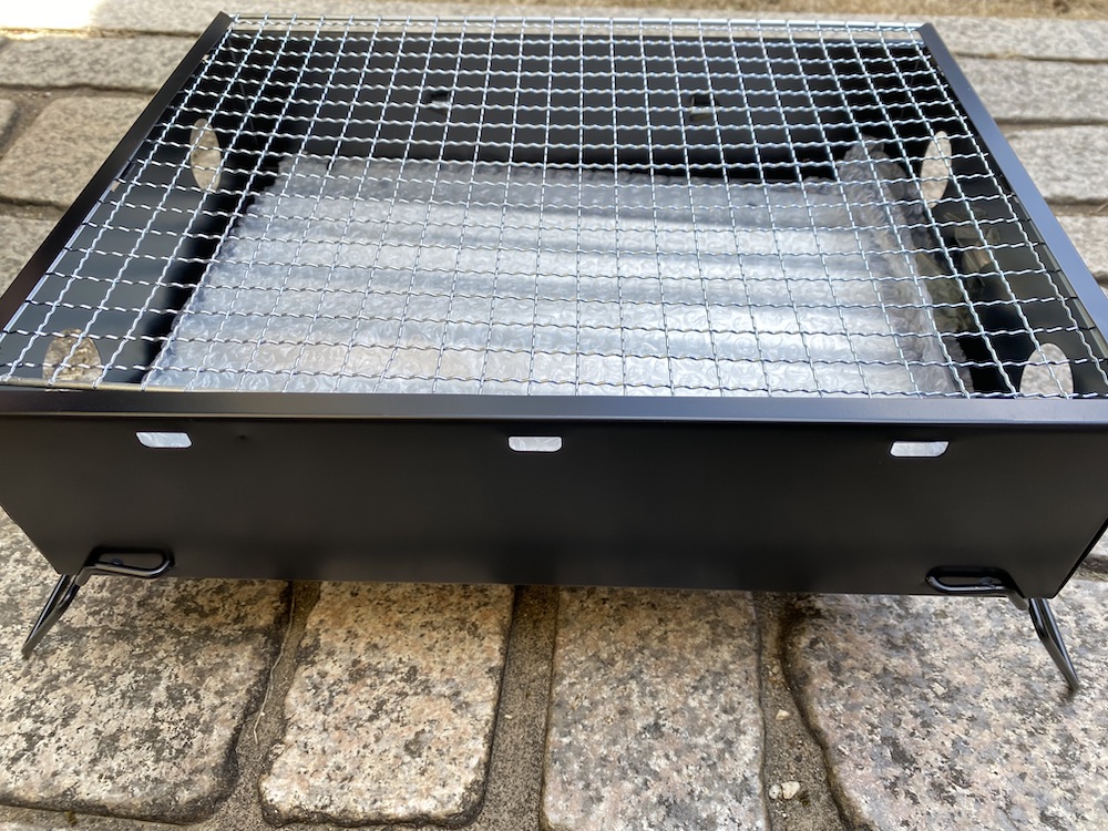我が家では、足をネジで組み付るタイプのバーベキューコンロを使用していたので、この手軽さには驚きでした。
