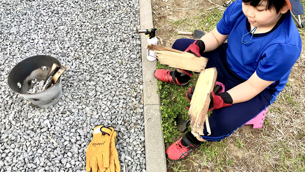 火を起こすのは●●ちゃん担当だね!等と話し、火吹き棒もキャンプのたびに自分で用意させるといいですね。