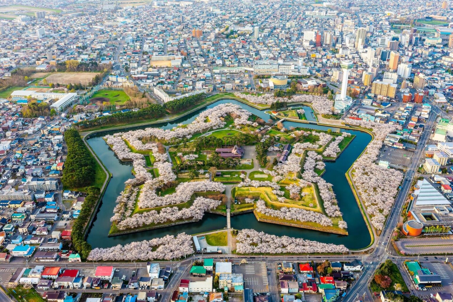 函館駅から出発し、まずは五稜郭へ向かいましょう。五稜郭は、江戸時代末期に建造された星型の城郭で、そのユニークな形状は空から見ると一層際立ちます。五稜郭タワーからは、この美しい星型の城郭を一望できるだけでなく、函館市街や函館山の絶景も楽しめます。