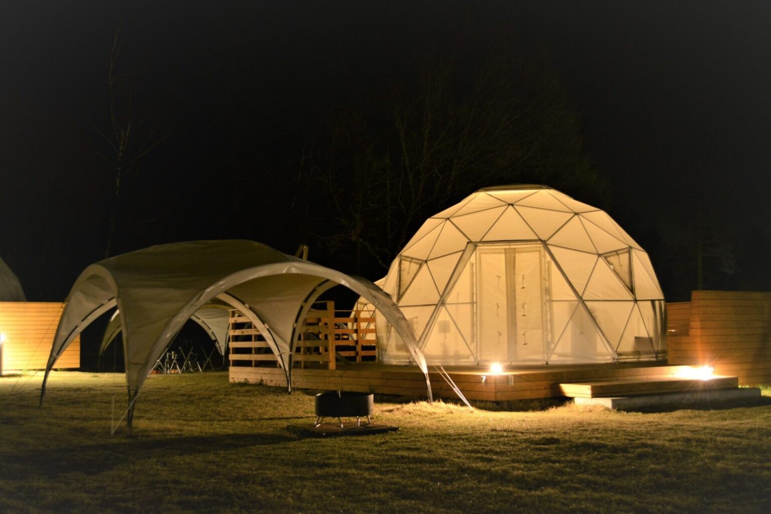 吉野の夜は、星空の下でのキャンプ体験に最適です。「GRANPARK YOSHINO」では、純白のドームテントと吉野の星空が輝きを放ちます。広々とした施設スペースで、街灯の少ない環境のもと、満天の星空を堪能できるのが特徴です。