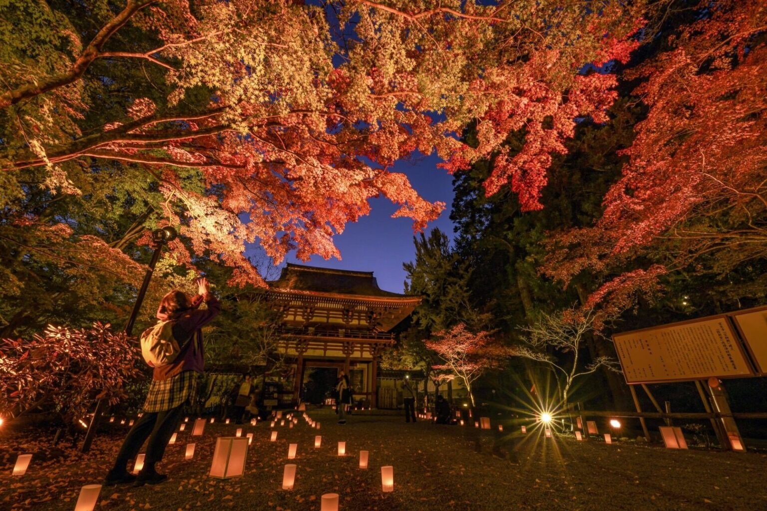 奈良県宇陀市に位置する室生寺は、自然に囲まれた秘境にあり、秋には紅葉の美しさで訪れる人々を魅了します。山間の静寂な環境の中、紅葉期には室生寺の境内や周辺の山々が鮮やかな赤や黄色に染まり、訪れる人々に心の安らぎを与えてくれます。