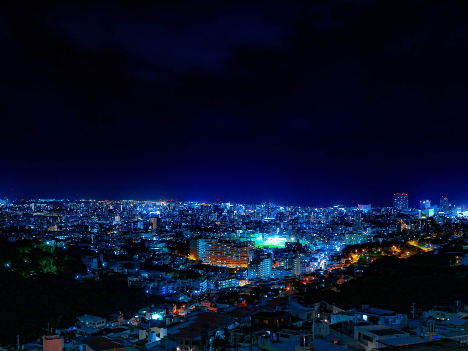 那覇の夜は、昼間とは一味違った魅力があります。夜景を楽しむなら、「首里城公園」の夜間特別開放をおすすめします。首里城のライトアップは、幻想的な雰囲気を演出し、沖縄の歴史を感じさせる美しい光景です。また、那覇市内の高台からは、星空の下、市街地の灯りが織りなす夜景を一望できます。