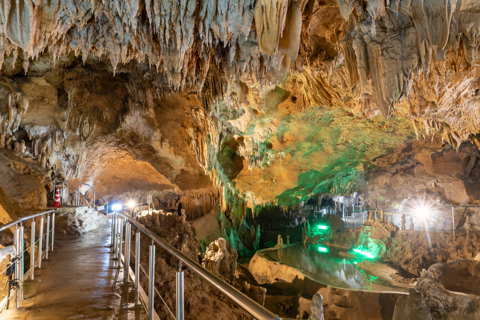 洞窟内には「長寿の湖」と呼ばれる神秘的な色をした泉があり、その美しさは訪れる人々を魅了します。また、サンゴやシャコ貝の化石も見つかり、地球の歴史を感じさせてくれます。