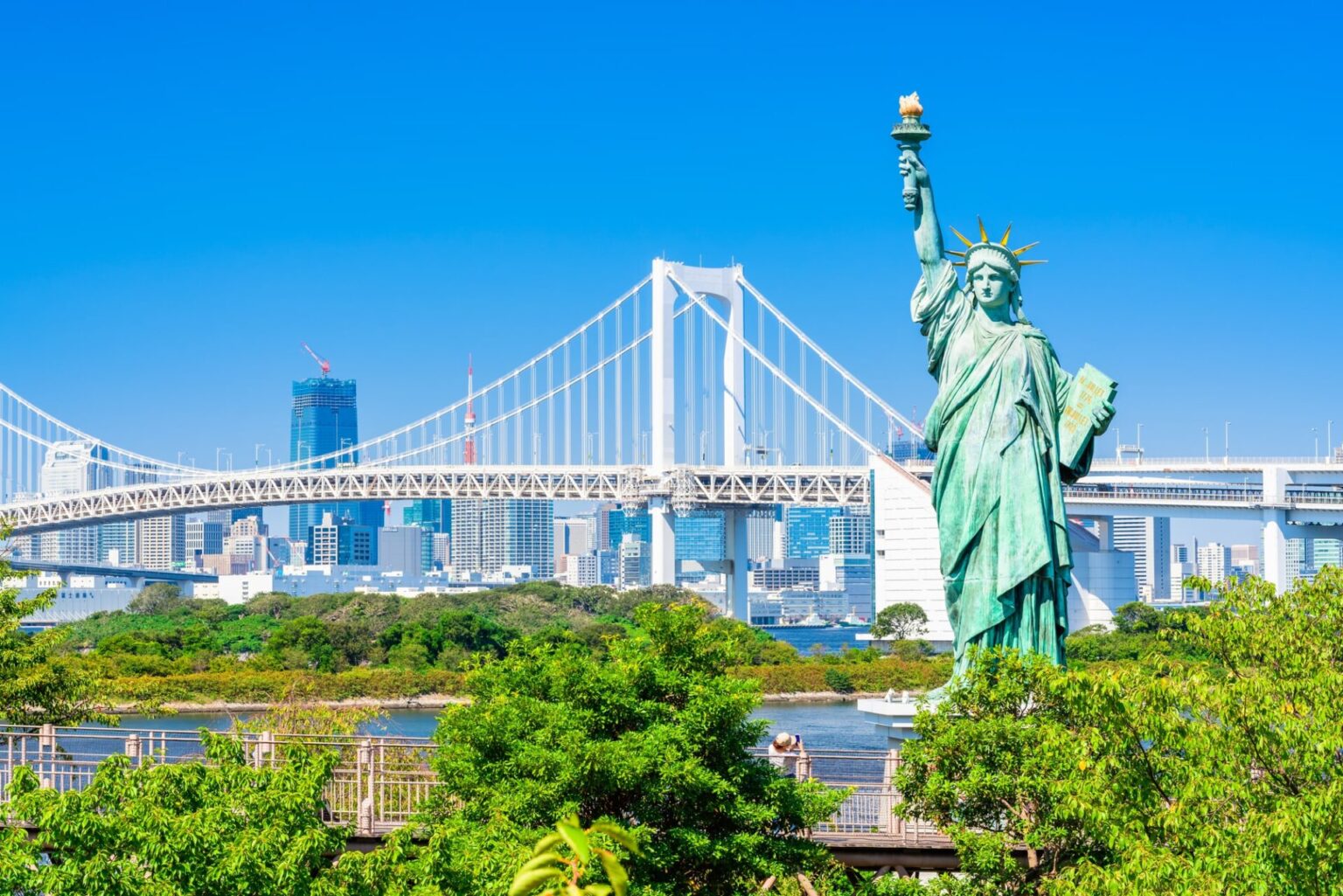 お台場海浜公園は、東京湾に面した開放的な空間で、カップルや家族連れに人気のスポットです。海辺を歩きながら、心地よい潮風を感じてみませんか。公園内では、自由の女神像をはじめ、さまざまなフォトスポットがあります。また、レインボーブリッジや東京タワーなど、東京の象徴的な景色も一望できますよ。