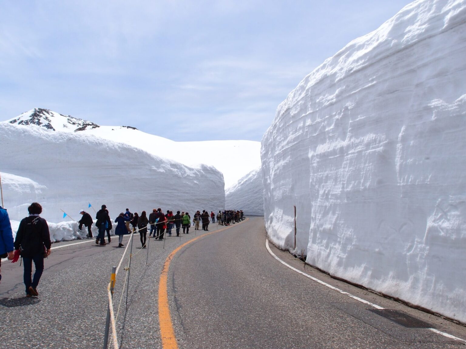 また、室堂平からは「雪の大谷」へのアクセスも容易です。雪の壁が作り出す幻想的な景色を間近で体験することが可能。さらに、室堂平では、立山連峰の壮大な景色を背景に、思い出に残る写真を撮る絶好のチャンスもあります。