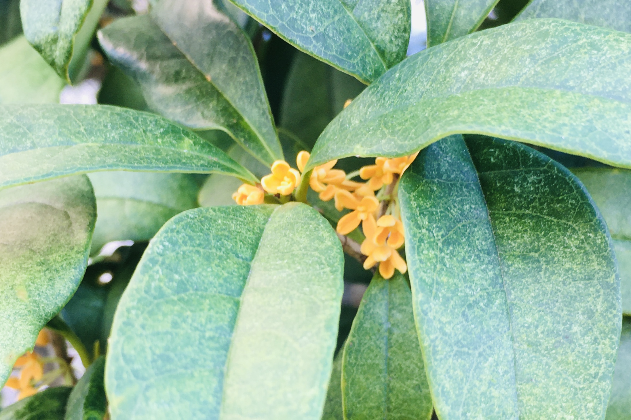 キンモクセイが咲く時期は短いですが、甘い香りとオレンジの花に毎年癒されます。