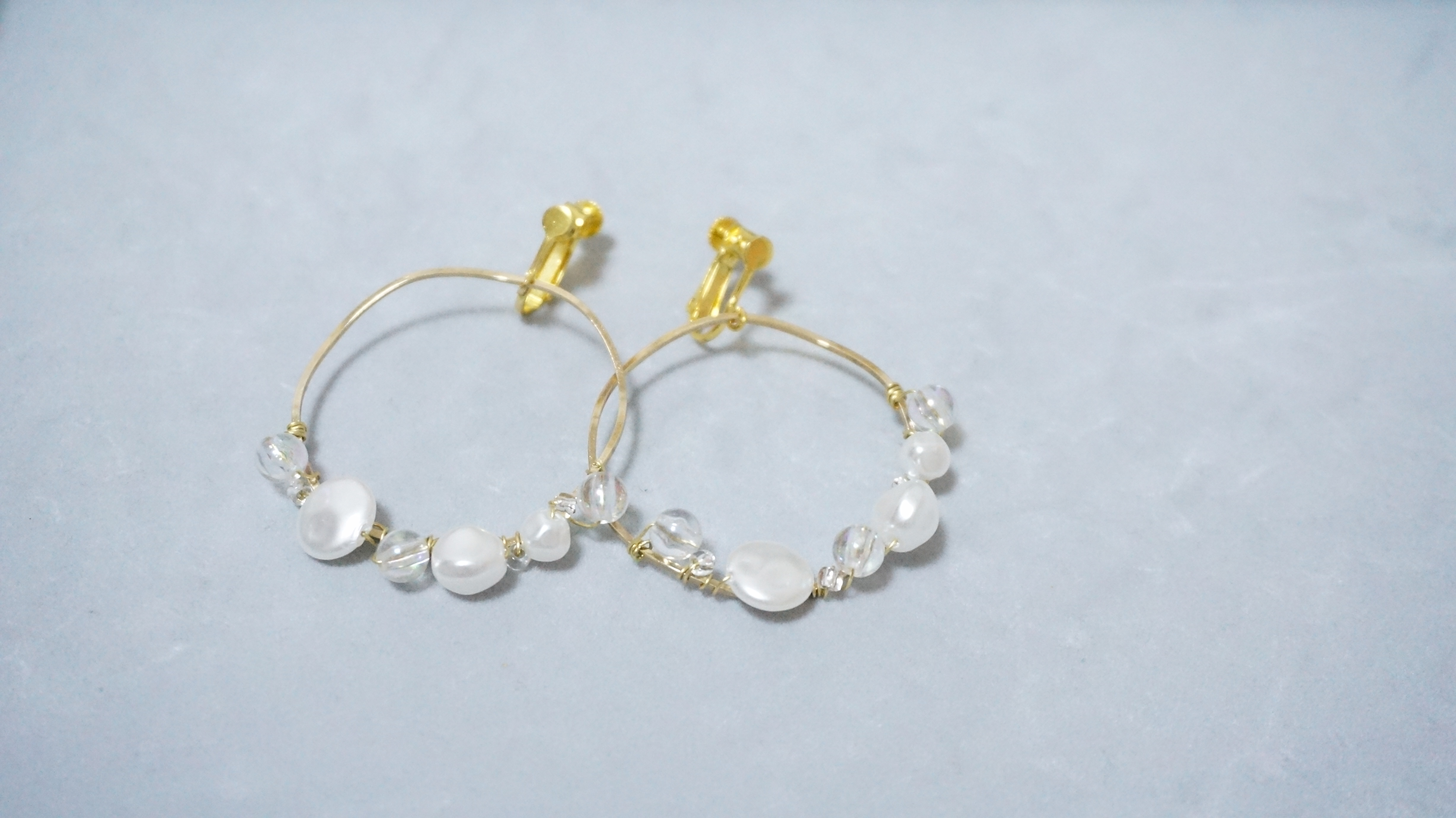 シンプルなデザインなので普段使いにはもちろんイベントにも合わせやすいアクセサリーに仕上がりました!コットンパールにしたり、ビーズの種類を変えるだけでまた違ったデザインに仕上がりますのでぜひアレンジして作ってみるのはいかがでしょうか。