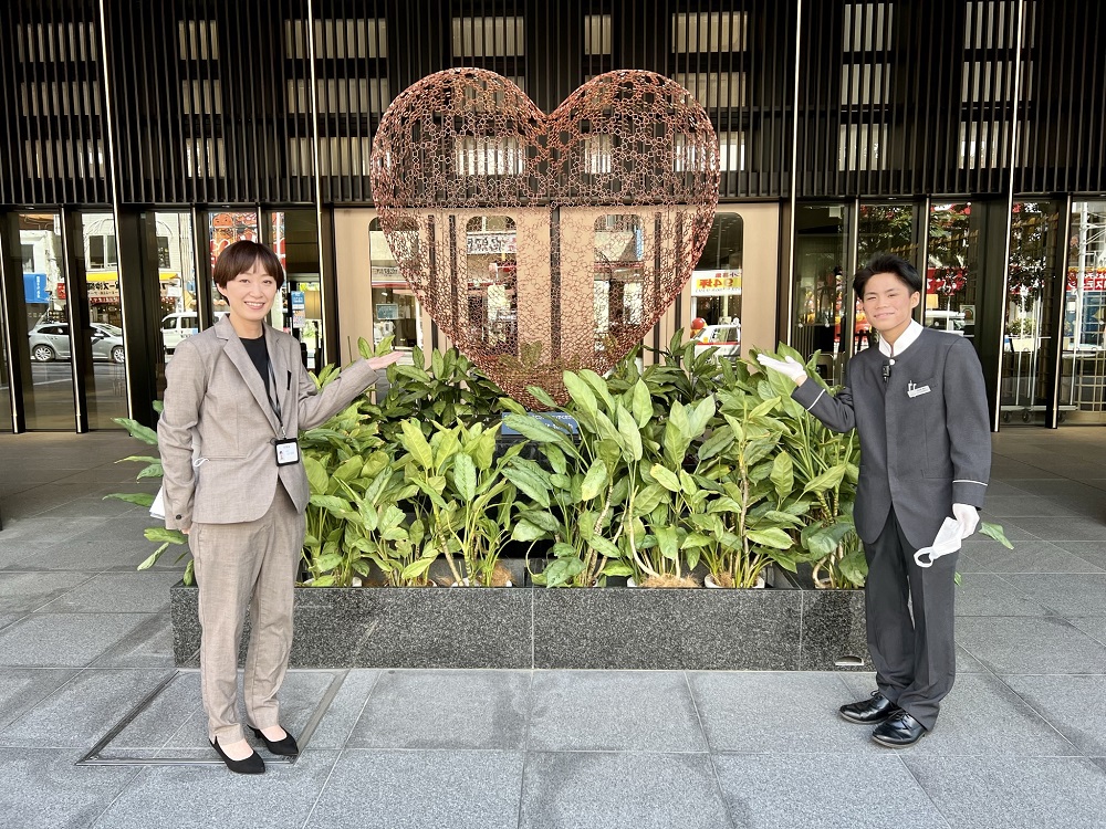 ホテルの顔と言えるのが国際通りに面したエントランスにあるハートのオブジェです。 ドイツの芸術家Lageman Rainerが手掛けたこの作品には「 ハートフルなおもてなし 」「 ホテルの中心(心臓部) 」といった意味が込められています。そのかわいらしいフォルムには通りを行き交う人たちも思わず足を止めて写真をパシャリ。国際通りの新しいフォトスポットとして知られています。