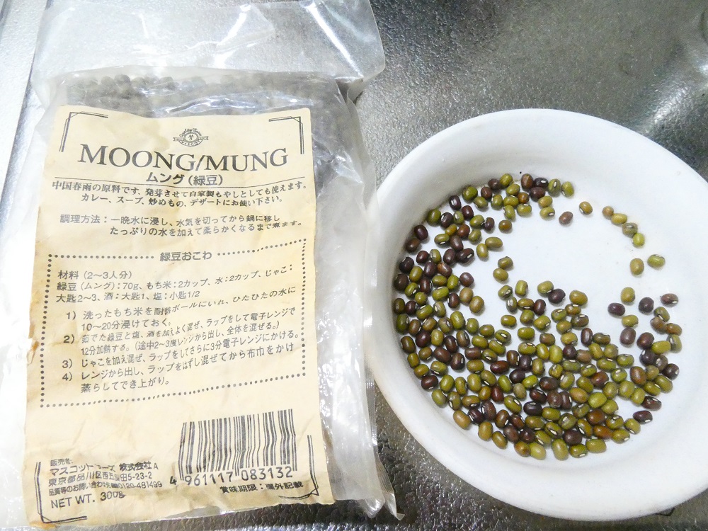 豆置き場から、古すぎる緑豆を発見しました。この緑豆を買ったとき、確か三男が小学校に入っていなかったように思います。彼はすでに成人していますが、この緑豆も20年ものですか。
