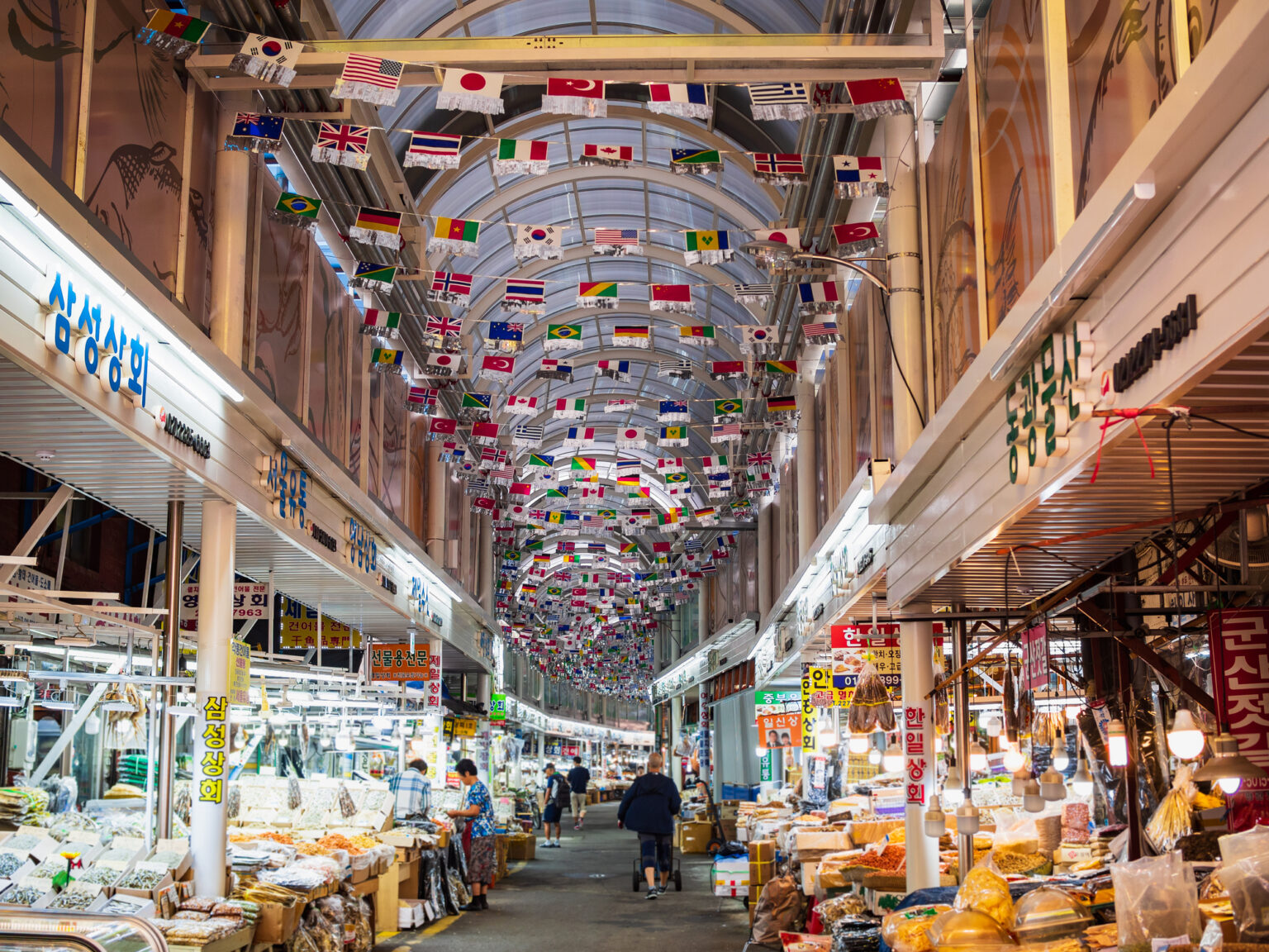 最後に、朝早くから地元の人で賑わう「南大門市場」。生活品から韓国コスメまで、幅広い商品が揃っています。特に9階から12階は免税フロアとなっており、お買い物の後は地下の食品売り場もぜひ見てみましょう。
